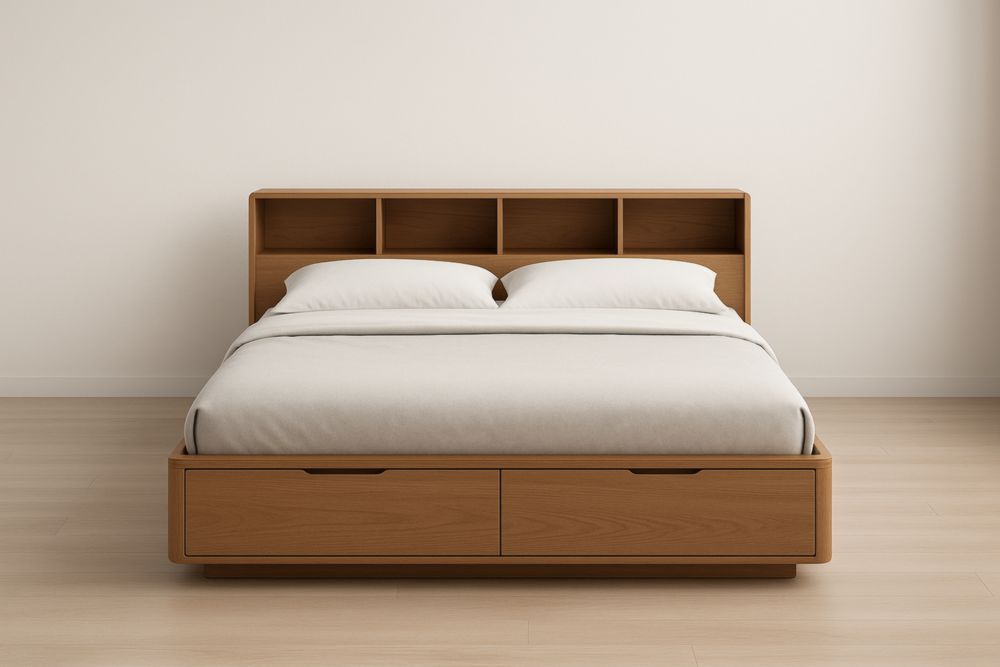 Lit double en bois avec rangement et étagères 200x160×120 cm