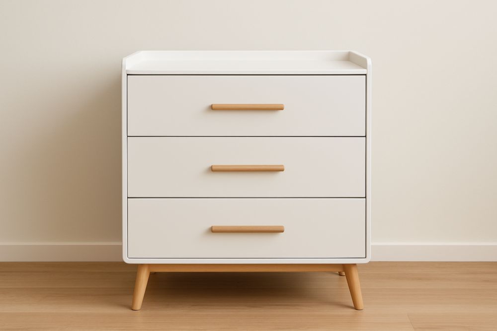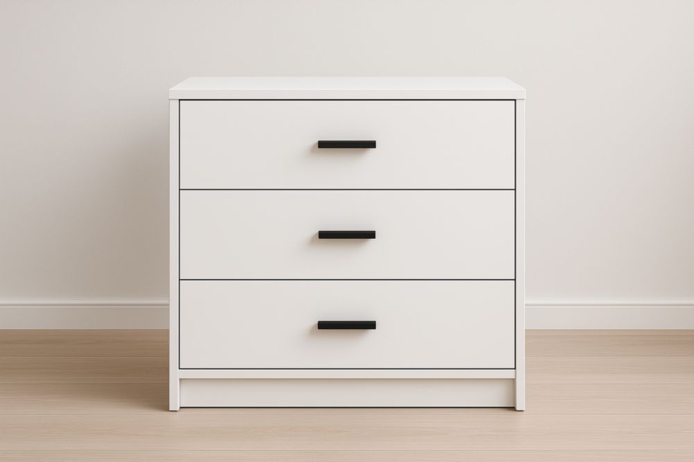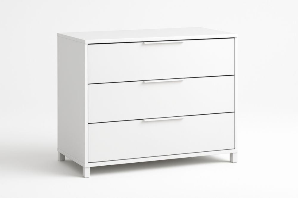 Commode 3 tiroirs blanc en panneaux de particules