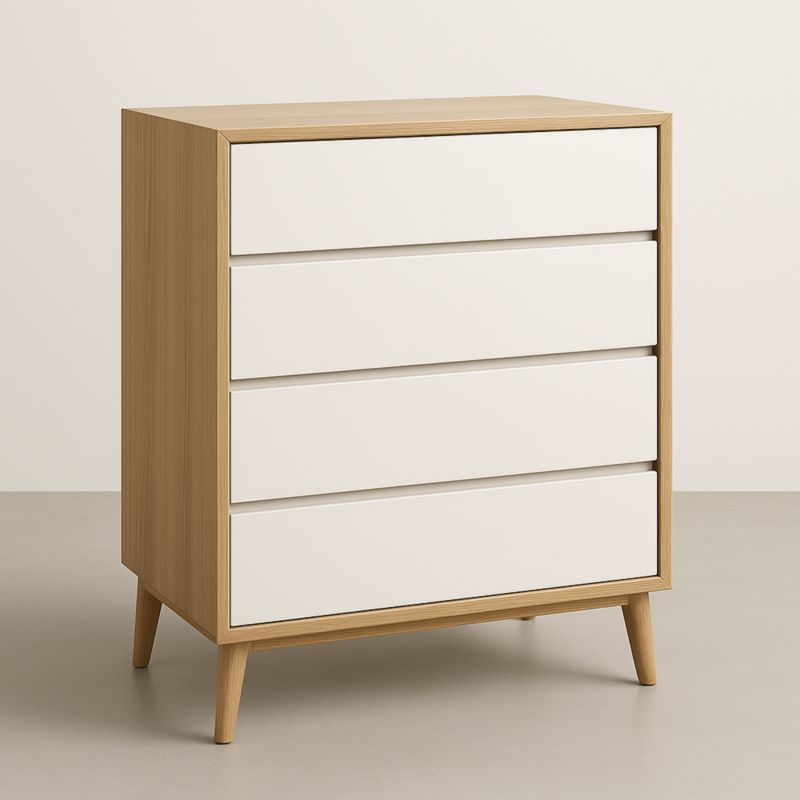 Commode 3 tiroirs MDF et hêtre blanc/naturel 80x40x75 cm
