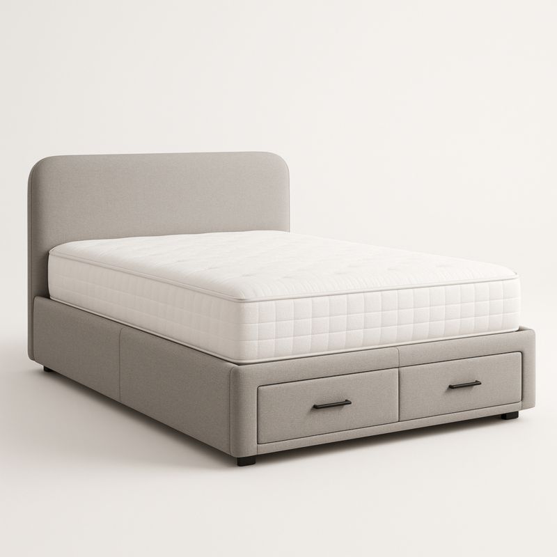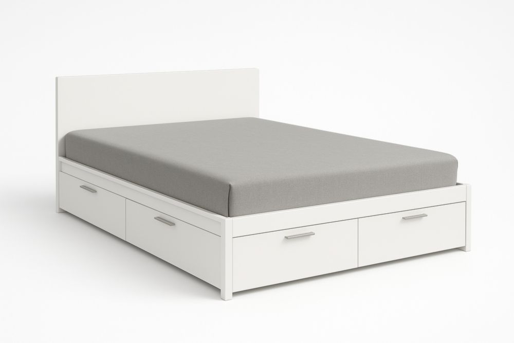 Lit en tissu gris avec rangement et matelas 140x200 cm