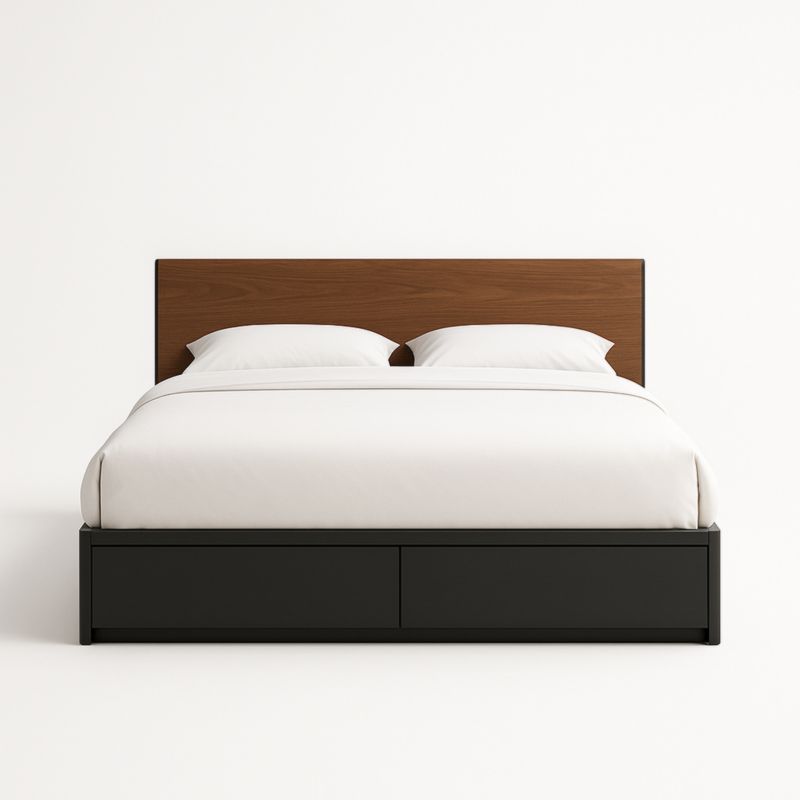 Lit double avec tête de lit en bois et rangement en MDF 200x160 cm Noir et Marron