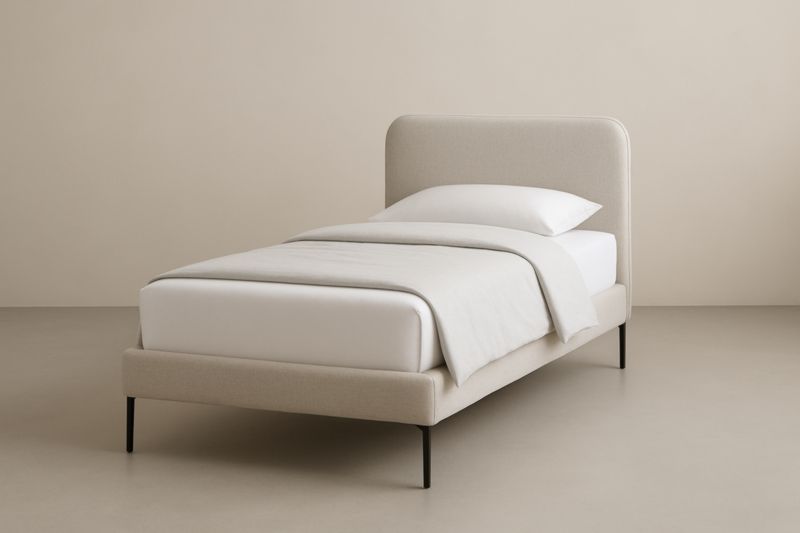 Lit simple en lin et acier Beige 208x98x110 cm